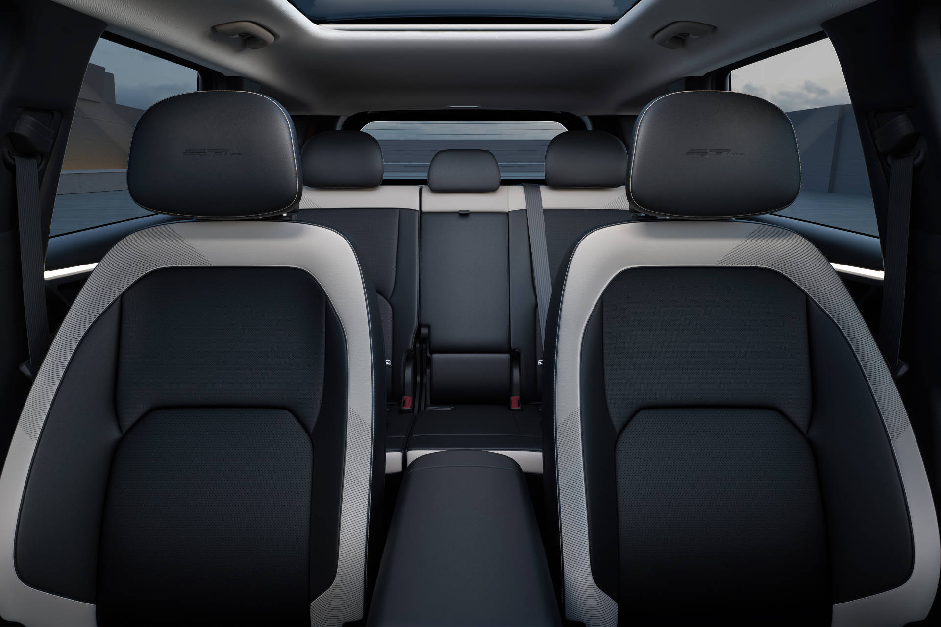 Die Beinfreiheit im Fond lässt sich von 885 Millimeter auf bis zu 958 Millimeter erweitern, ein Spitzenwert in diesem Segment. Sowohl der Fünf- als auch der Viersitzer bieten hinten eine Kopffreiheit von bis zu 973 Millimetern. Werden die Rücksitze beim Viersitzer ganz nach hinten geschoben, beträgt die Kopffreiheit 968 Millimeter (bei maximal geneigter Rückenlehne 955 Millimeter). Der Gepäckraum fasst beim Viersitzer bis zu 403 Liter (wenn sich die Rücksitze in der vordersten Position befinden), beim Fünfsitzer 362 Liter. Weiteren Stauraum bietet ein 15-Liter-Frunk unter der Haube, was im Wettbewerbsumfeld derzeit einzigartig ist.
